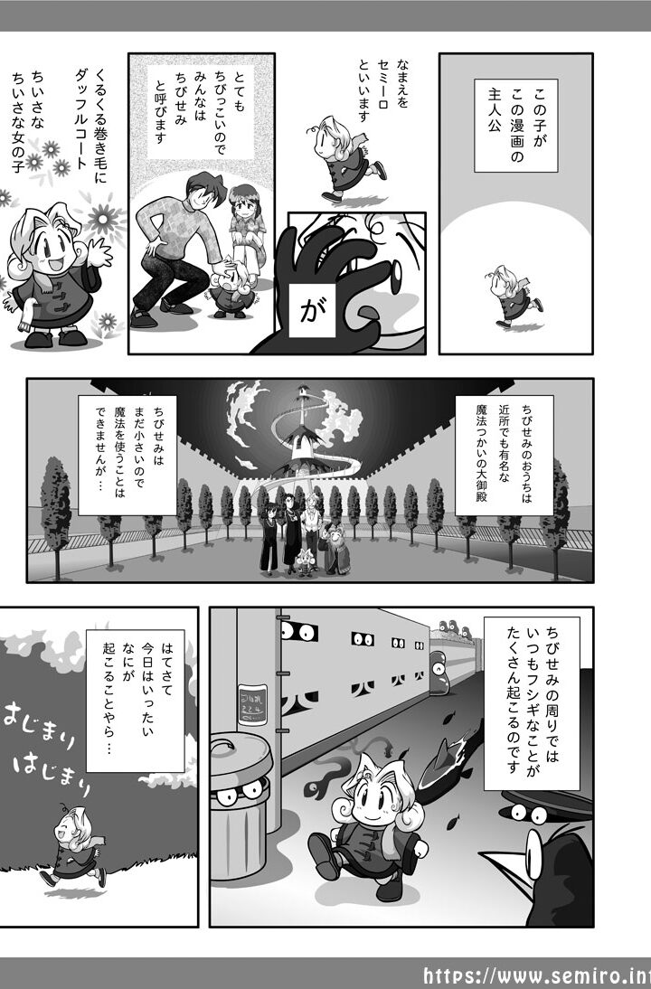 「ちびせみ」が大体どんなお話かという1ページ漫画です。